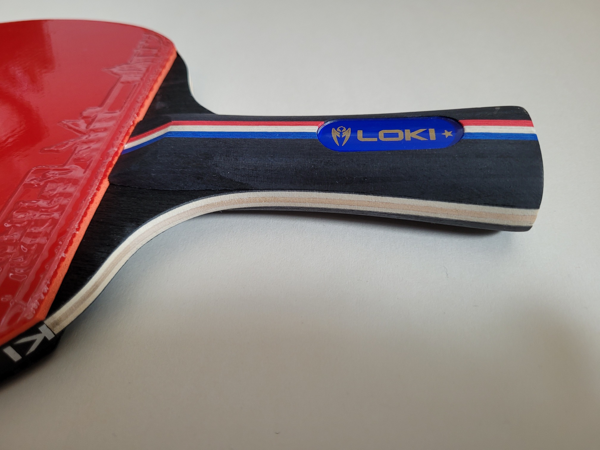 Vorhand Belag und Rückhand Belag: LOKI RXTON I max rot und schwarz.