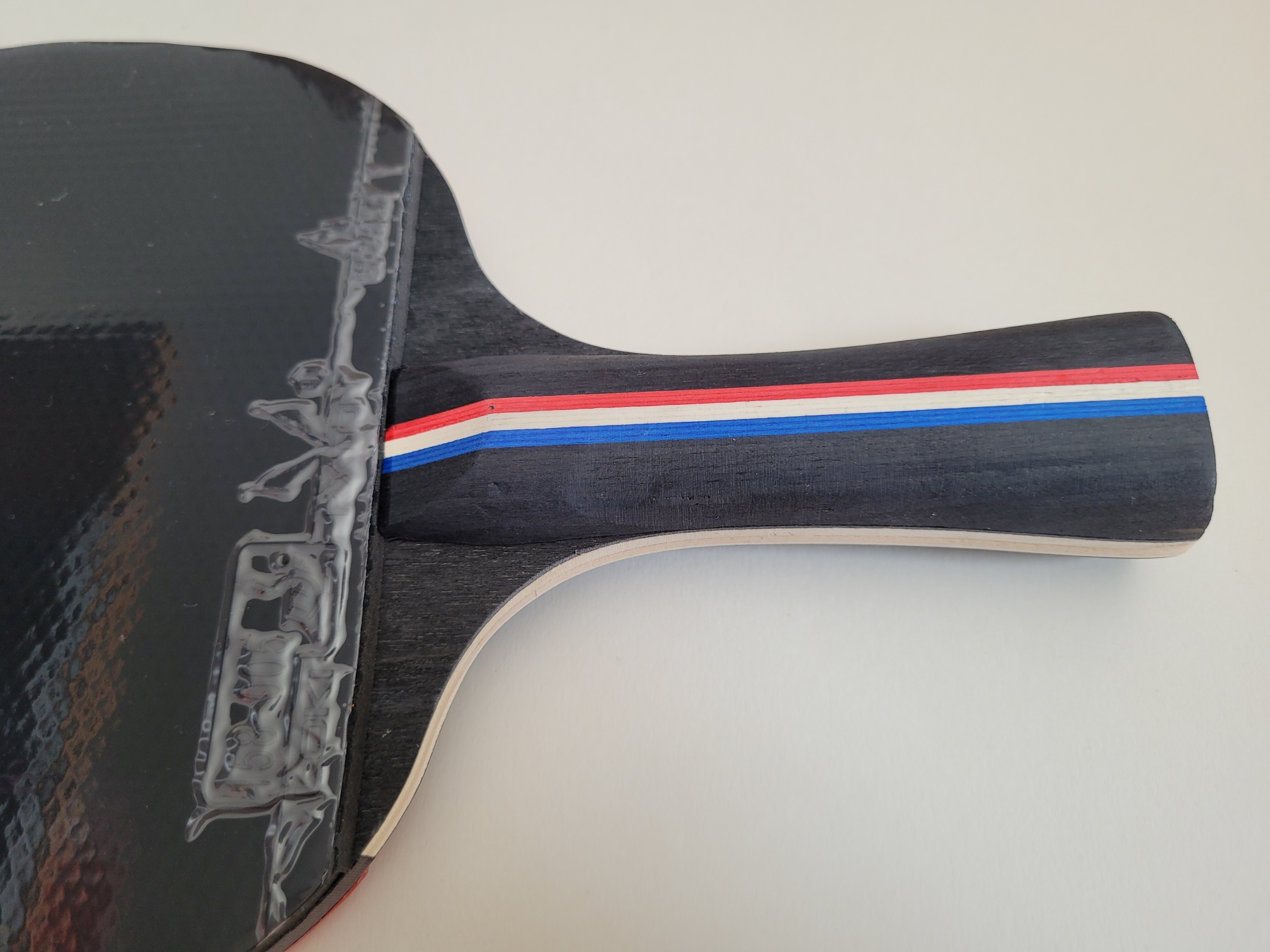 Das Holz ist aus 5 Holzfurnieren, die geschickte Furnierauswahl ist der Garant für ausreichend hohe Tempowerte und eine sehr hohe Kontrolle.