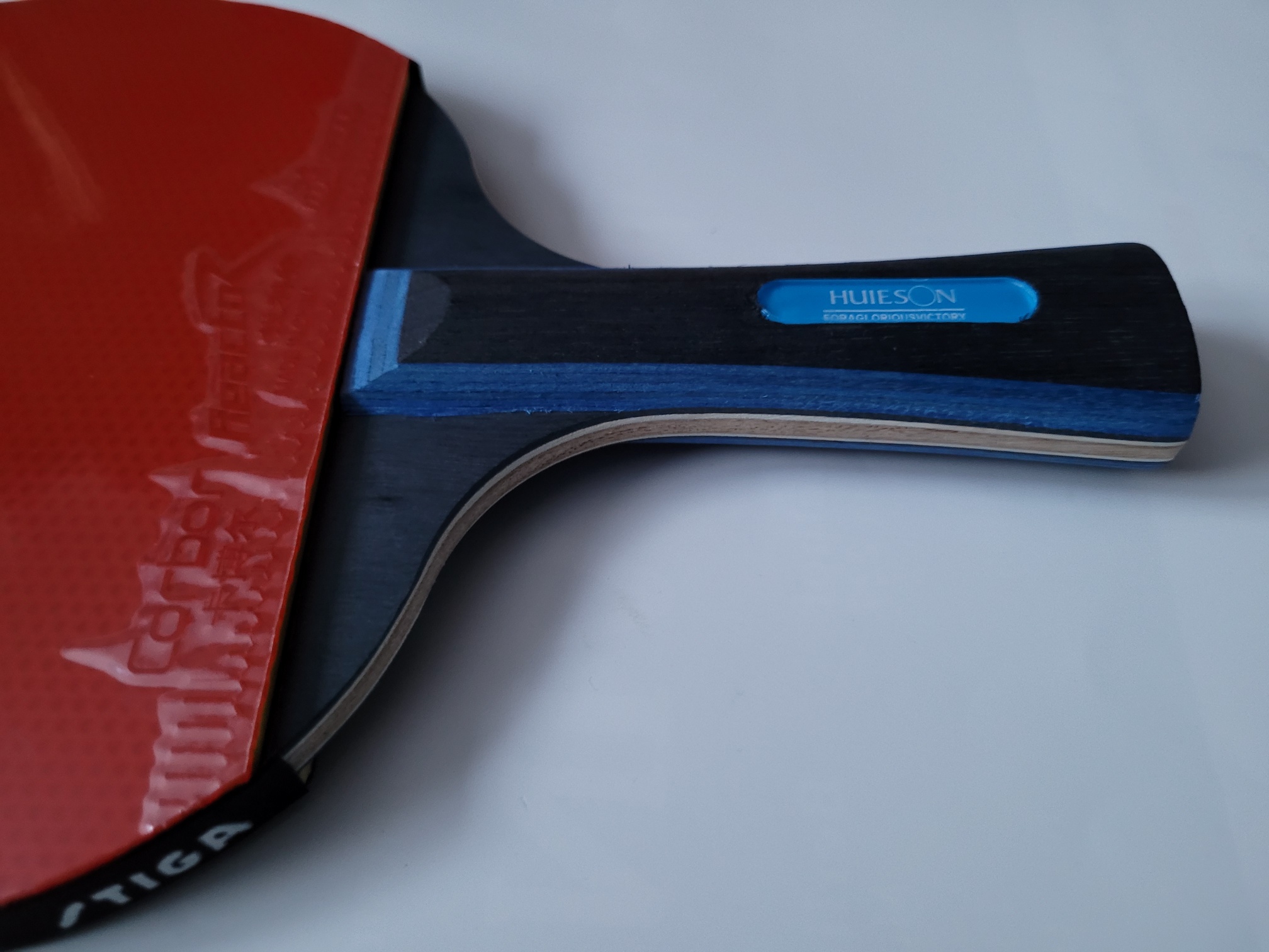 Ein hartes Koto-Außenfurnier (sehr beliebt auch bei den großen Stars der Tischtennis-Szene) sorgt für mehr Tempo,